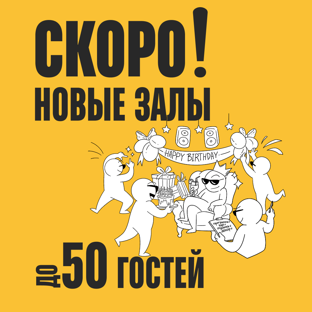 Формат для корпоративов, больших дней рождения, свадеб и любых событий, где 25 мест уже мало.